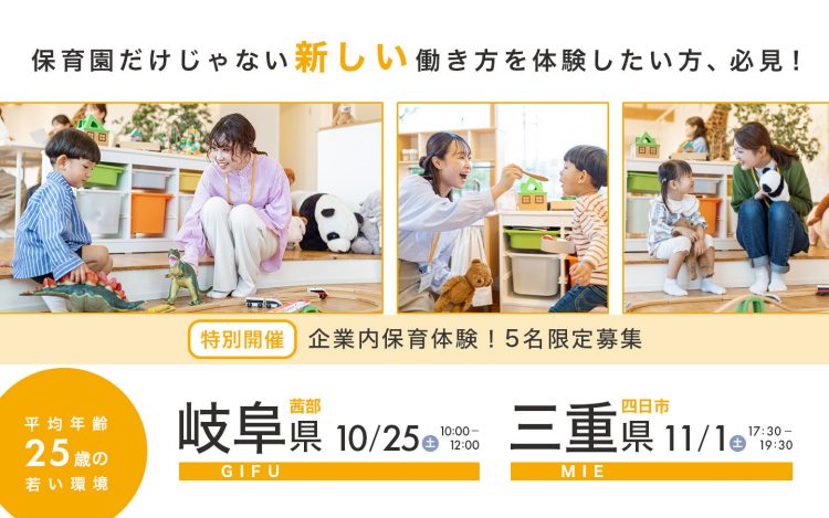 【特別開催】企業内保育体験、5名限定募集