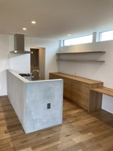 キッチンの背面収納やリビングの収納棚と
