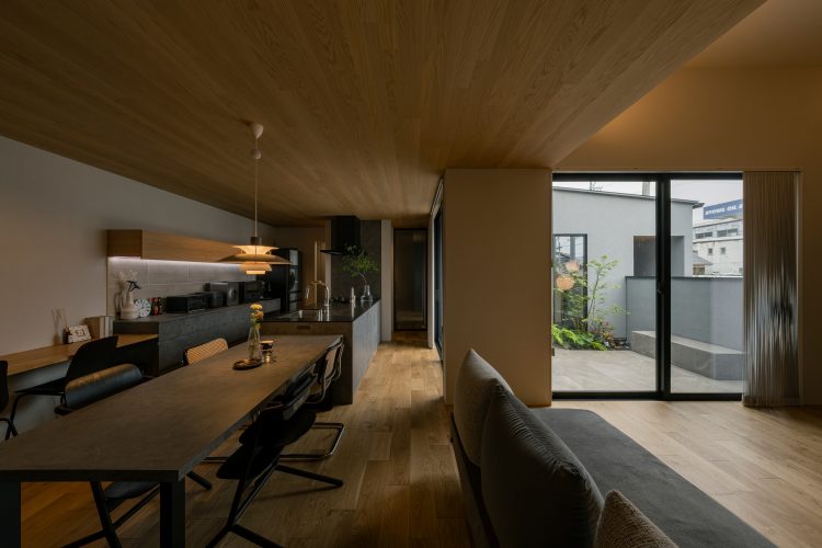 リビングに広がりを持たせる土間空間、