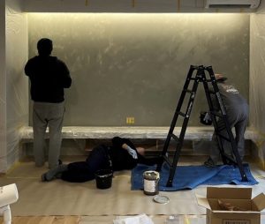 背面とテレビボード部分で表面の仕上がりを変えるため