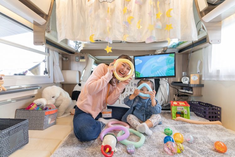見学会場外に設置するキッズスペースにて、