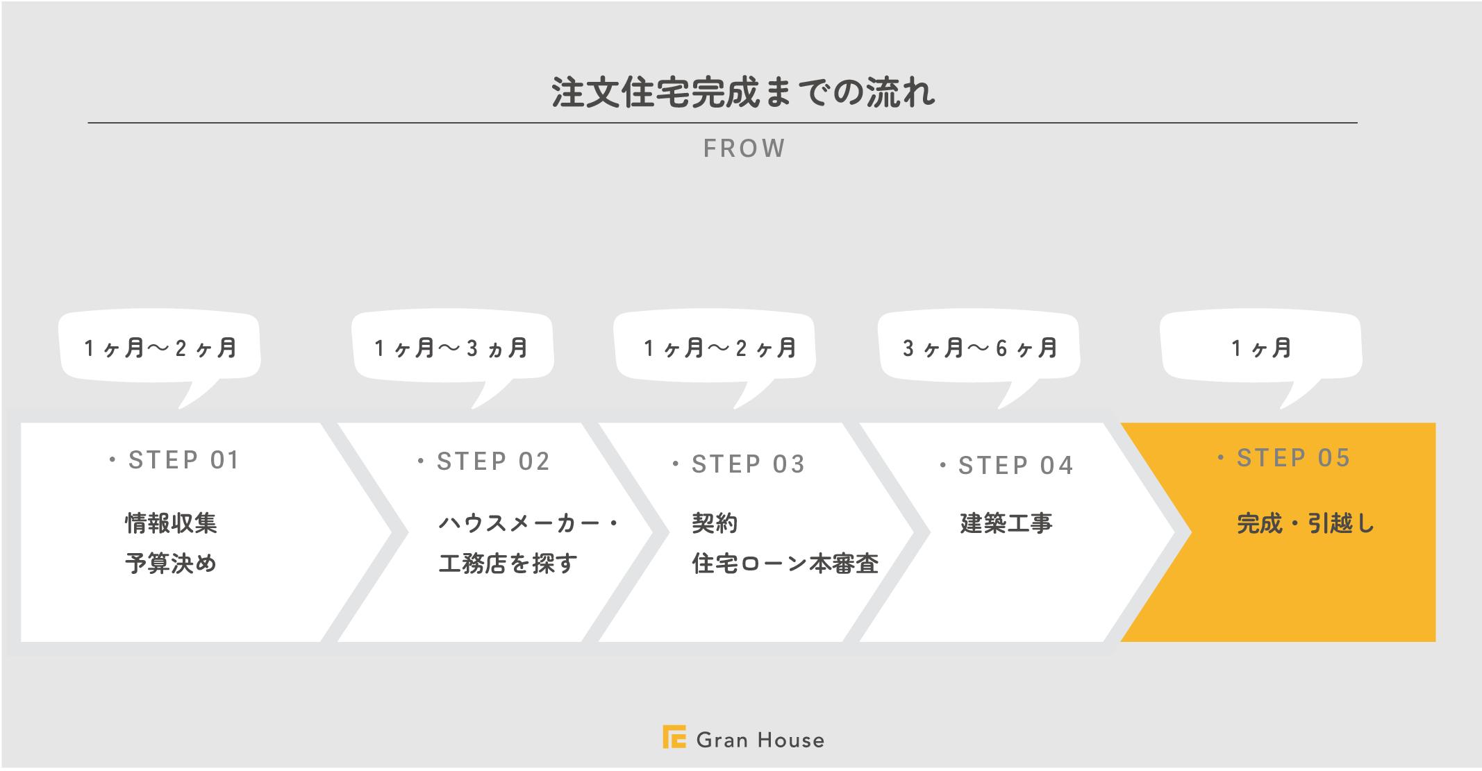 注文住宅は自由度が高い分、打ち合わせや手続き、建築工事などに時間がかかる傾向にあります。