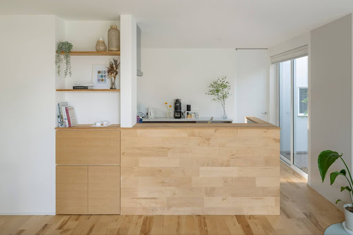 常に整った状態を保つのが難しい場合は、手元を隠せる腰壁や立ち上がりカウンターの設置がおすすめ。視線を遮ることで見た目をすっきり保てるほか、収納スペースを増やしたり、壁面デザインでおしゃれに演出することも可能です。