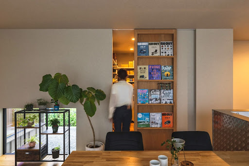 必要に応じて開閉できる可動間仕切りは、広い空間を柔軟に使える便利なアイデアです。開ければLDKと一体化して開放的に、閉めれば独立した個室として活用できます。