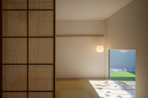 視線が抜けて庭の景色を楽しめる一方、外からの目線は入りにくく、プライバシーも確保可能。昼間は自然光だけで心地よく過ごせ、夜は障子や照明の明かりが柔らかく広がります。客間や家族のくつろぎスペースとして多用途に活用できますね。