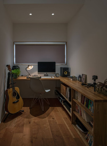 コンパクトながらも落ち着いて作業できる小さな書斎は、在宅ワークや趣味の時間に最適です。壁付けのデスクと収納棚を設ければ、限られたスペースでも機能的に使えます。