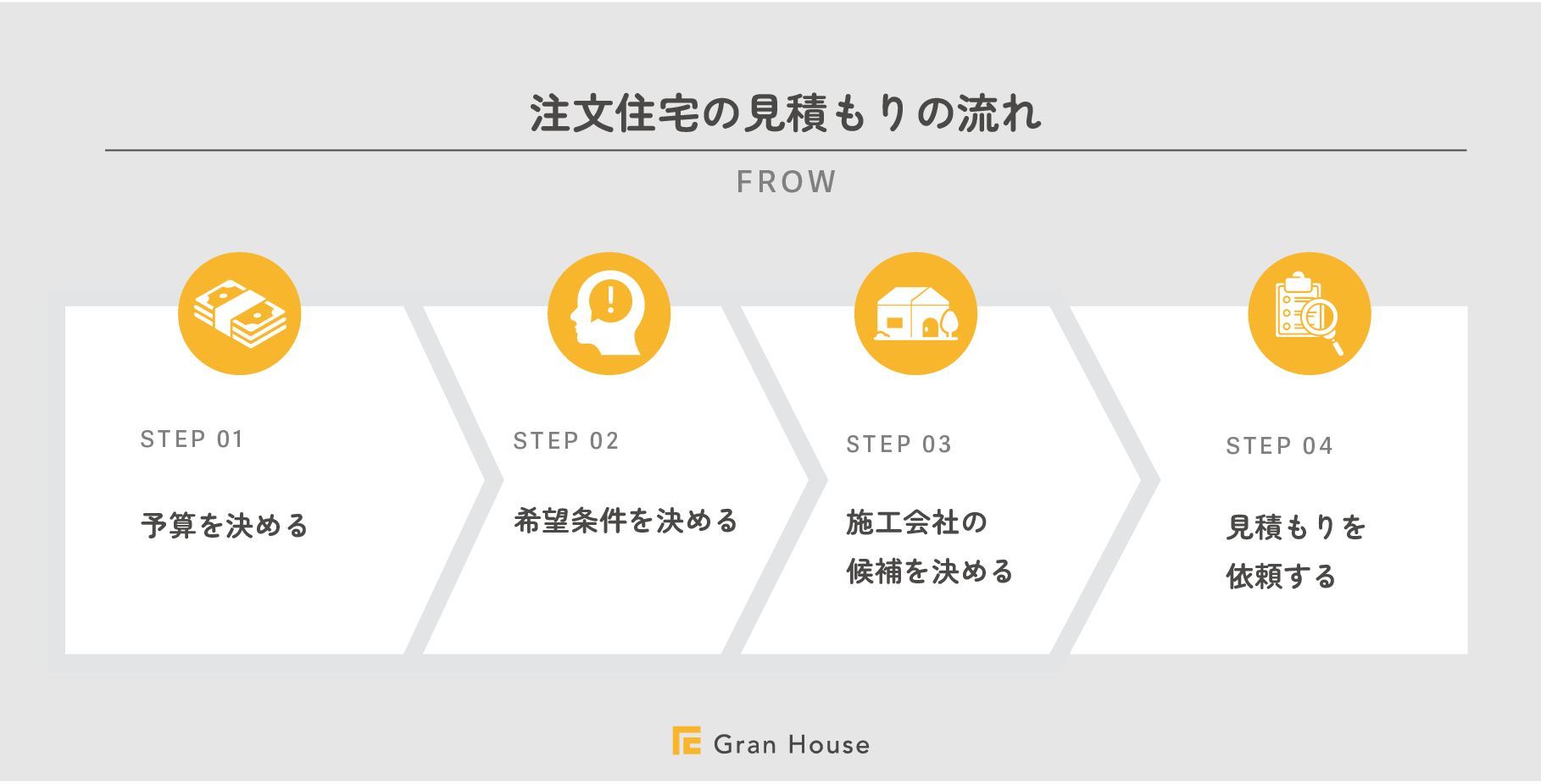 ここでは、注文住宅の見積もりがどのように進んでいくのかを、次の「4つのステップ」に分けてご紹介します。