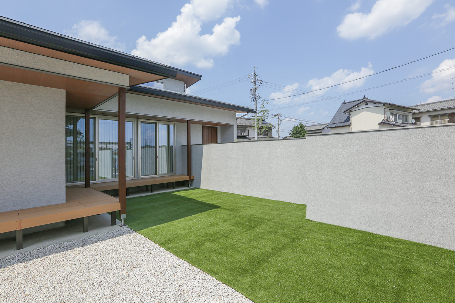 デザイン性と利便性を両立した仕上がりです。子どもの遊び場や家族のくつろぎスペースとしても活躍し、季節の変化を感じながら快適に過ごせます。