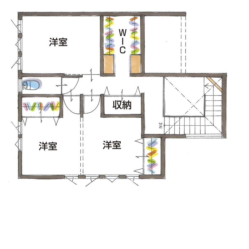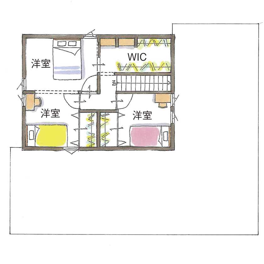 2階には3つの居室を設け、家族のライフスタイルに応じて柔軟に使える設計になっています。