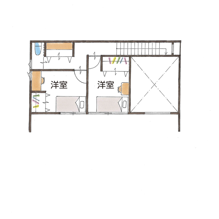 2階には子ども部屋が2室あり、将来の変化にも柔軟に対応できる設計です。