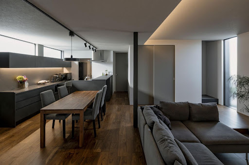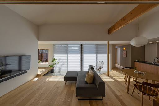 LDKから中庭へと自然につながるフラットな設計により、開放感を感じられる建築実例です。