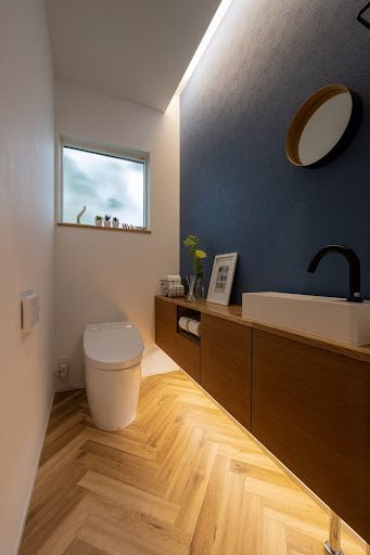 水や汚れに強く、洗面所やトイレなどの水まわりに最適。光の当たり方で表情が変わる美しさも魅力です。インテリアのアクセントとして使えば、個性のあるおしゃれな空間に仕上がります。