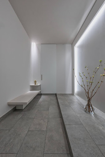 こちらは、白を基調とした上品な空間に大理石調の床が美しく映える建築実例です。
