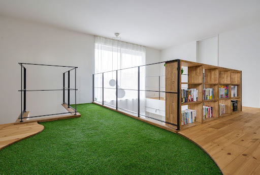 5. 室内に芝を敷いた、遊び心満点な床材!