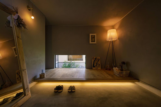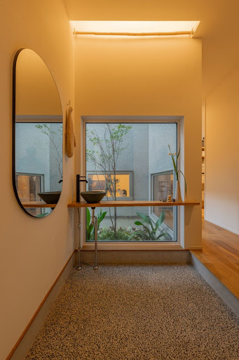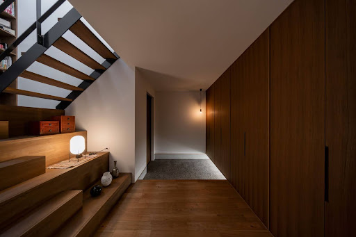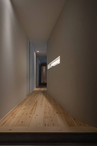 長く伸びる廊下と間接照明のやわらかな光が、静かな導線を描きながら心を落ち着かせてくれます。