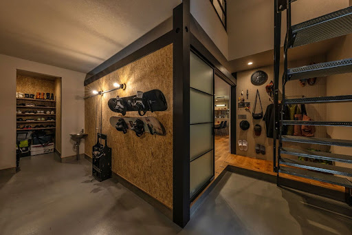 アウトドア用品や自転車、スノーボードなどをディスプレイしながら収納でき、趣味を楽しむ「見せる収納」としても活用されています。