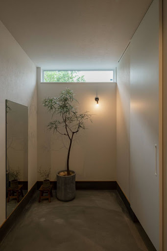 モルタル仕上げの床とシンプルな白壁が調和し、余計な装飾を省いたミニマルな美しさを感じさせます。