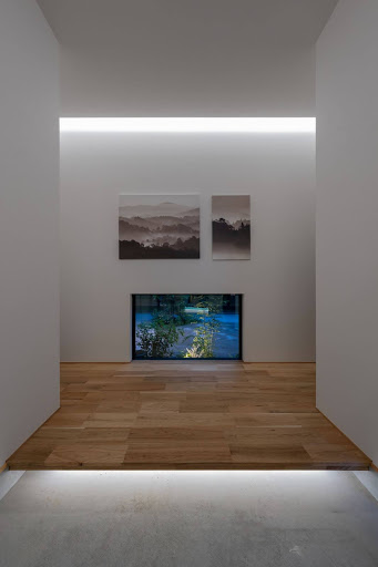 白を基調とした壁面に飾られたアートが主役となり、余白の美しさを引き立てています。