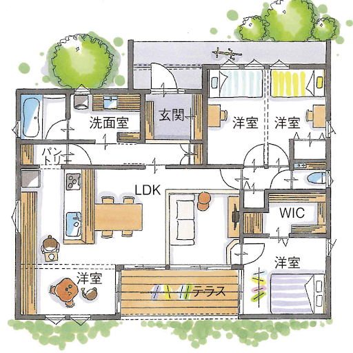 すべての部屋が1階で完結するため、高齢者・小さな子供・身体に不自由のある方にも優しいバリアフリーが実現できるのも良いところです。加えて、部屋同士が近くにあることで家族との距離が近くなり、自然とコミュニケーションが生まれやすいですよ。