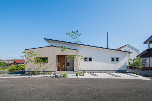 和モダンな平屋は、日本の伝統的な美意識と現代的なデザインを融合させた、落ち着きのある佇まいが魅力です。