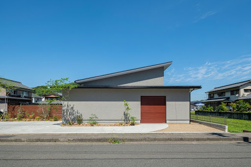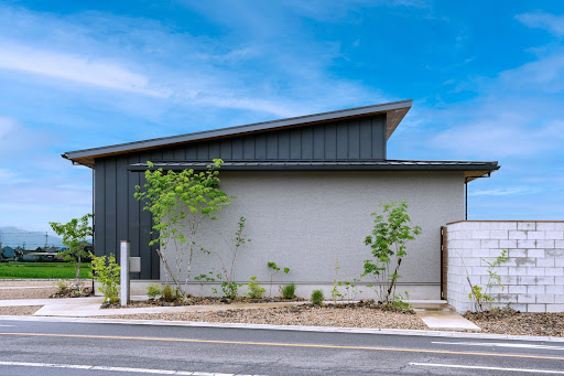 片流れの外観の平屋は、見る人に強い印象を与える個性的なデザインが特徴です。