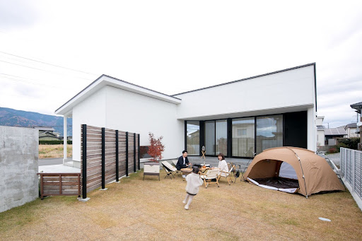 「コの字型」の平屋は、建物の三方を壁で囲み、一面のみをオープンにした間取りが特徴です。