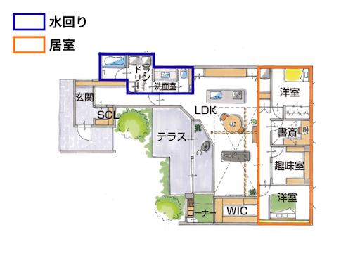 また、水回りをまとめることで配管が短くなるので、建設費用やメンテナンス性が高まるのも嬉しい点です。