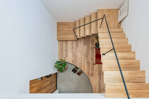 直線の階段より動きに変化があり、空間に奥行きやデザイン性を加えることもできます。