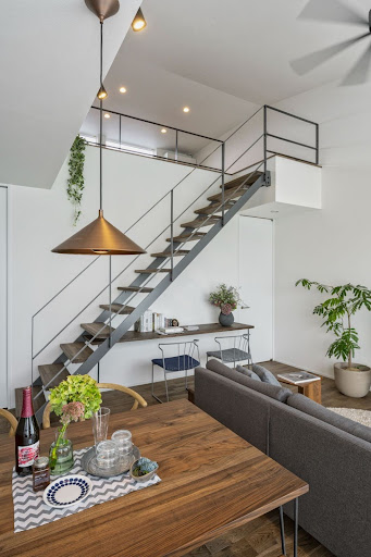 かね折れ階段は、上下階をL字型に折り曲げてつなぐ階段です。