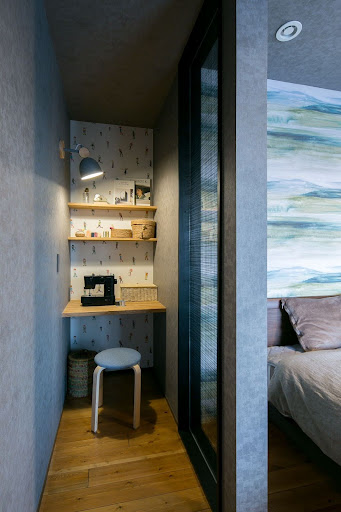 こちらのワークスペースは、寝室の一角に設けられた半個室タイプです。