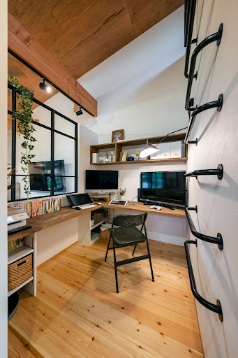 自然光をたっぷり取り込むことで、日中の作業も明るい気持ちで快適に行えますね。温かい木目の色調と余計な装飾を排除したミニマルな空間は、集中力を高めることもできそうです。