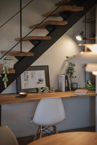 こちらのワークスペースは、階段下のデッドスペースを有効活用したコンパクトな設計が特徴です。