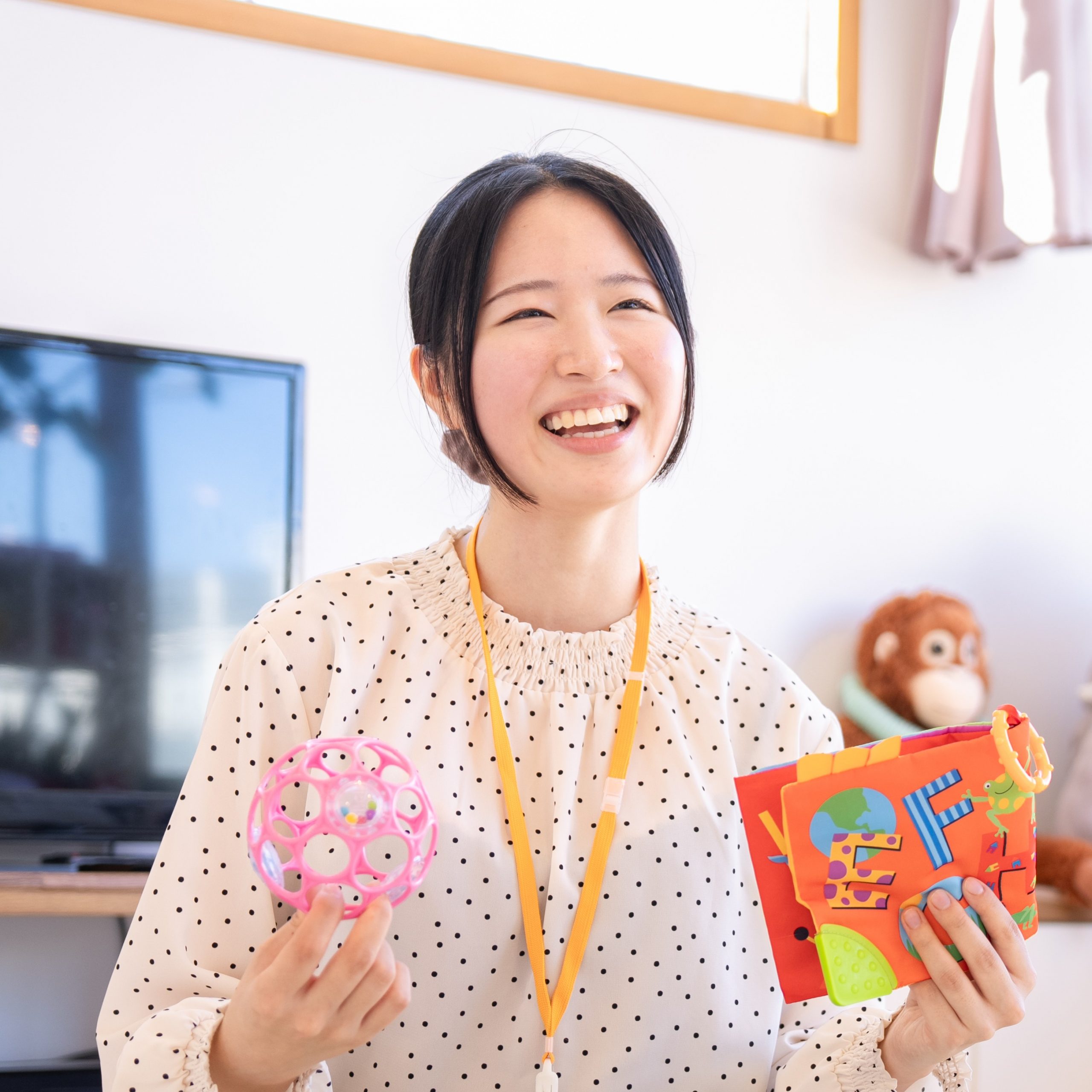 毎日たくさんのお子様の笑顔に癒されながら保育をしています。いつもお子様の目線に立ち、”どうしたら楽しんでもらえるかな?”と考えながら、今日も楽しい遊びをたくさんご用意してお待ちしております!