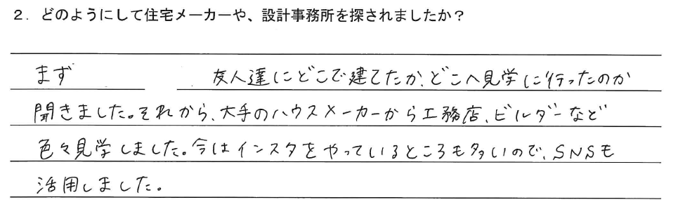 2.どのようにして住宅メーカーや、設計事務所を探されましたか?