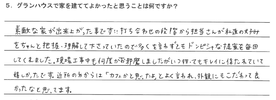 5.グランハウスで建ててよかったと思うことは何ですか?