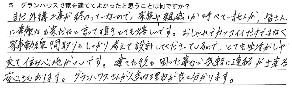 5.グランハウスで建ててよかったと思うことは何ですか?
