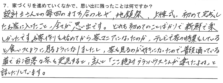 7.家づくりを進めていくなかで、思い出に残ったことは何ですか?