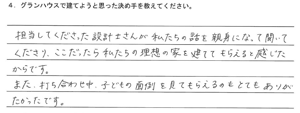4.グランハウスで建てようと思った決め手を教えてください。