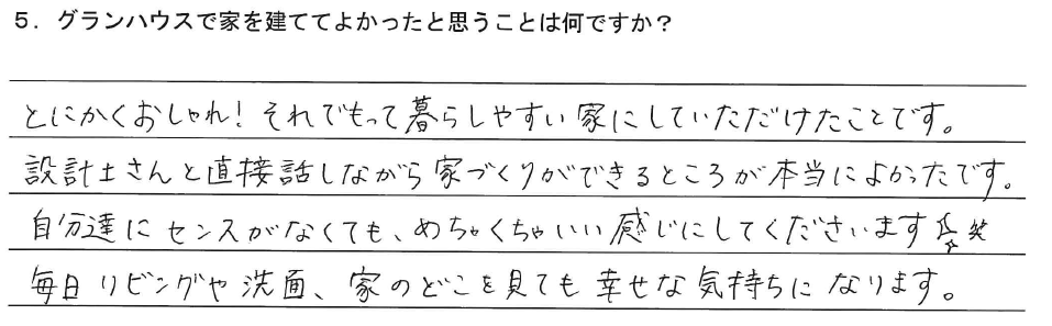 5.グランハウスで建ててよかったと思うことは何ですか?