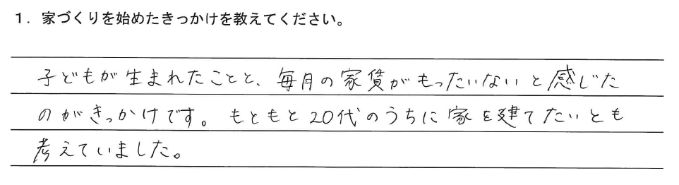 1.家づくりを始めたきっかけを教えてください。