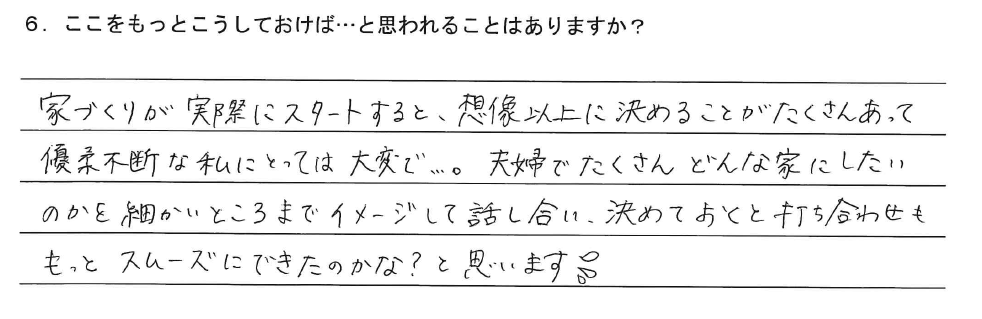 6.ここをもっとこうしておけば…と思われることはありますか?
