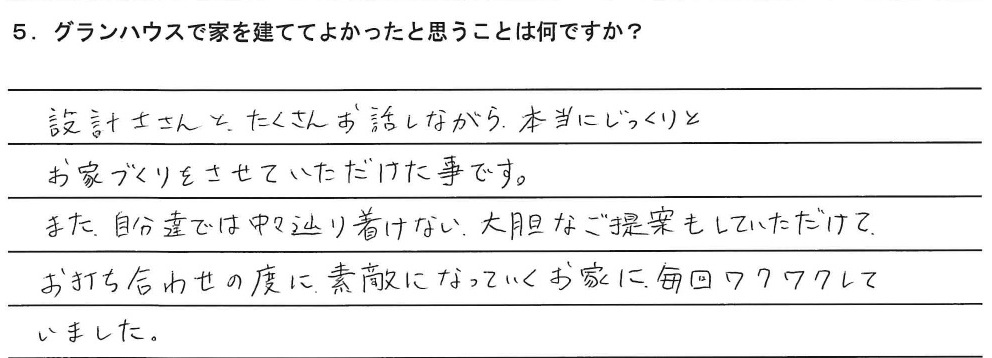 5.グランハウスで建ててよかったと思うことは何ですか?