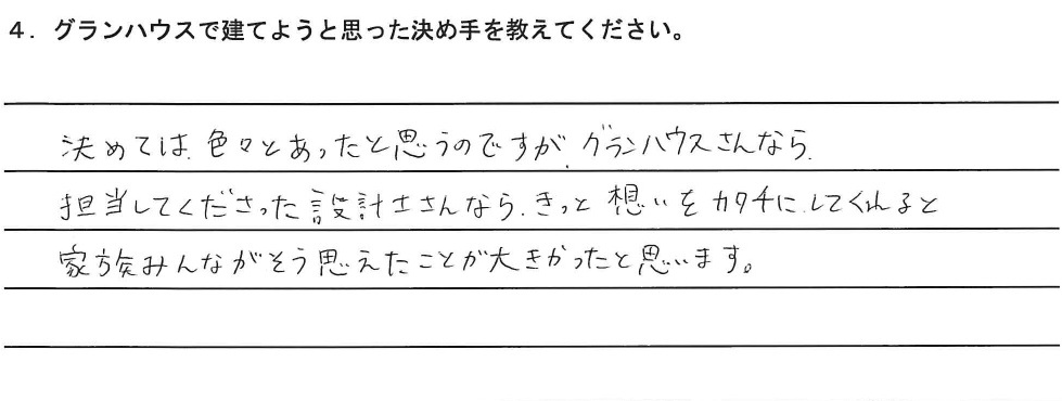4.グランハウスで建てようと思った決め手を教えてください。