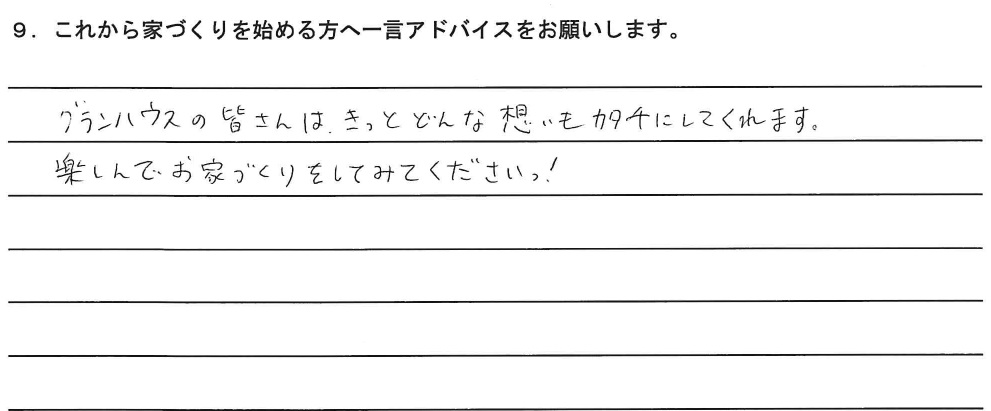 9.これから家づくりを始める方へ一言アドバイスをお願いします。
