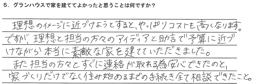 5.グランハウスで建ててよかったと思うことは何ですか?