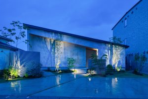寄棟を組み合わせた平屋で和に寄せつつも、なるべく線を減らしスッキリとした形でシンプルでモダンな要素も採りいれた。