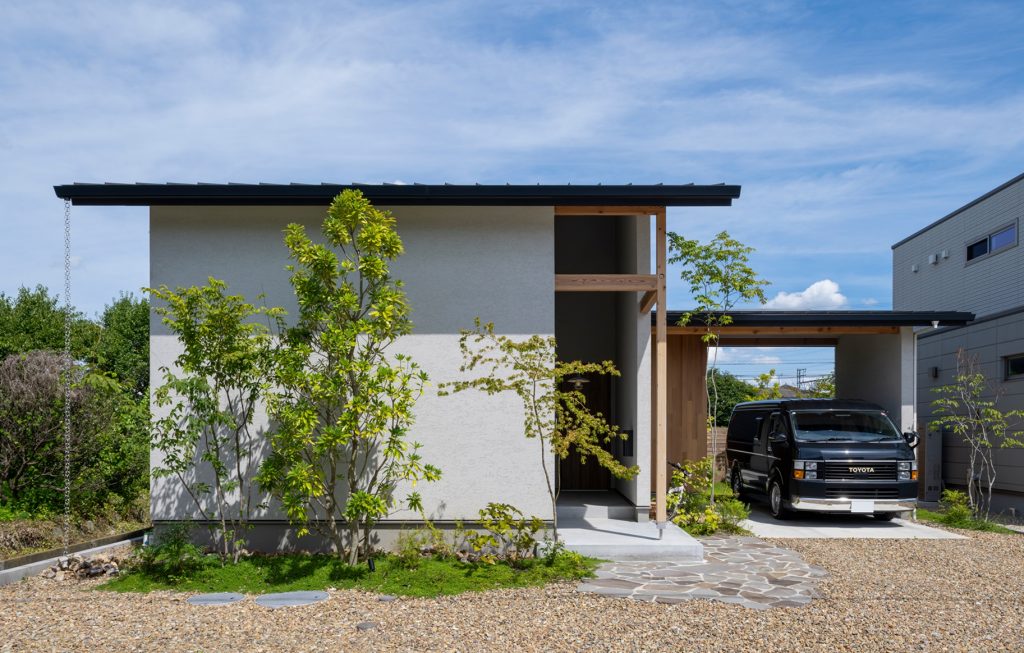 シンプルで和モダンな外観。30年後もかっこよくて飽きのこない不変的な外観を意識した。