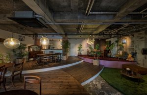 外構工事・デザインオフィスの事務所を併設したヘアサロンを、一宮市木曽川のイオン付近道路沿いに新築で設計施工した。1階には、打ち合わせスペースやヨガやダンススクールなど様々な用途で使用できるレンタルスペースが並び、2階は”大人女子の空間”がテーマの、かわいさと落ち着きを演出したプリミティブなサロンスペースとなっている。
