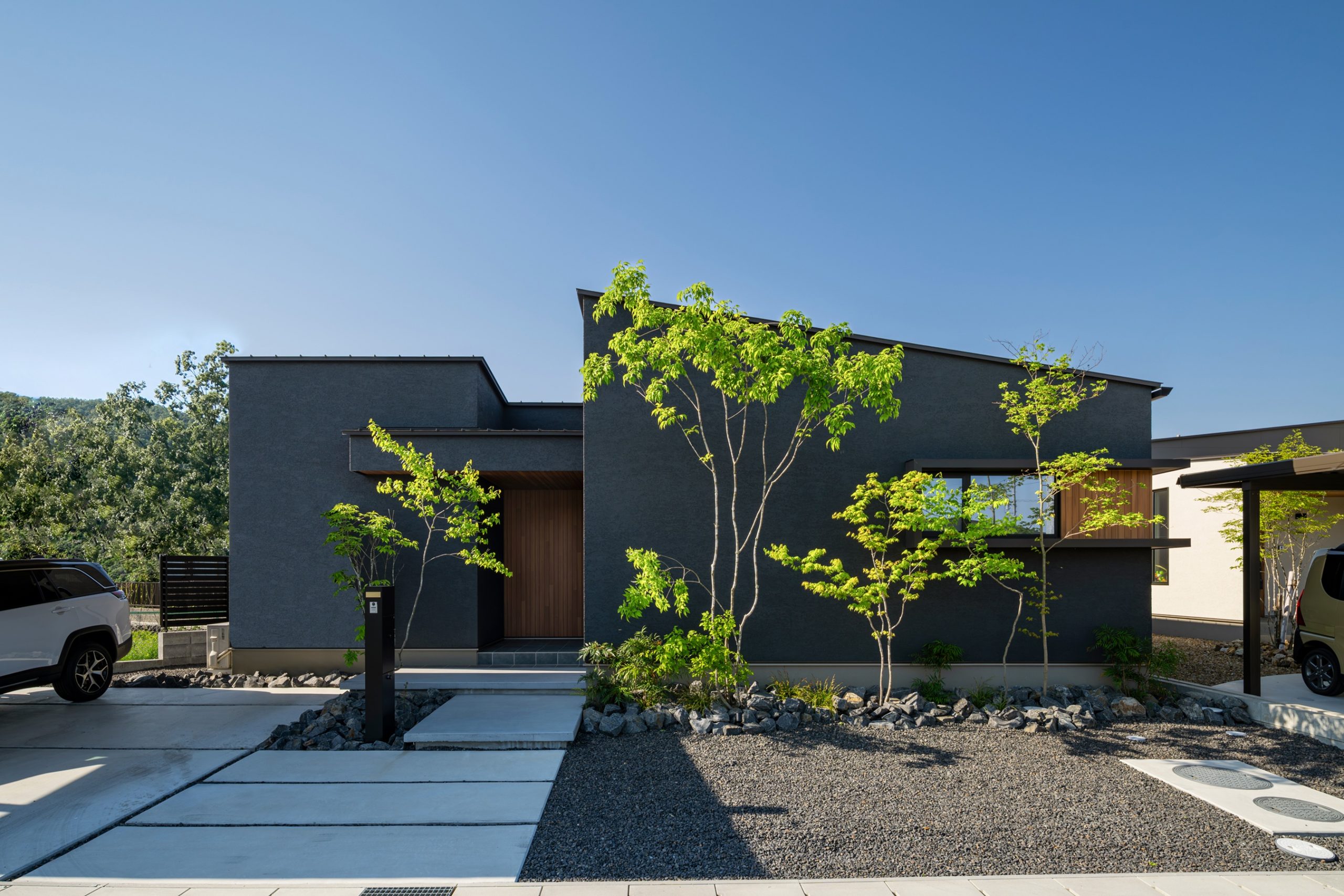 #シンプルモダン #ジャパンディ #黒 #グレー #塗壁 #タイル #木 #サイディング #和モダン #ホテルライク #平屋