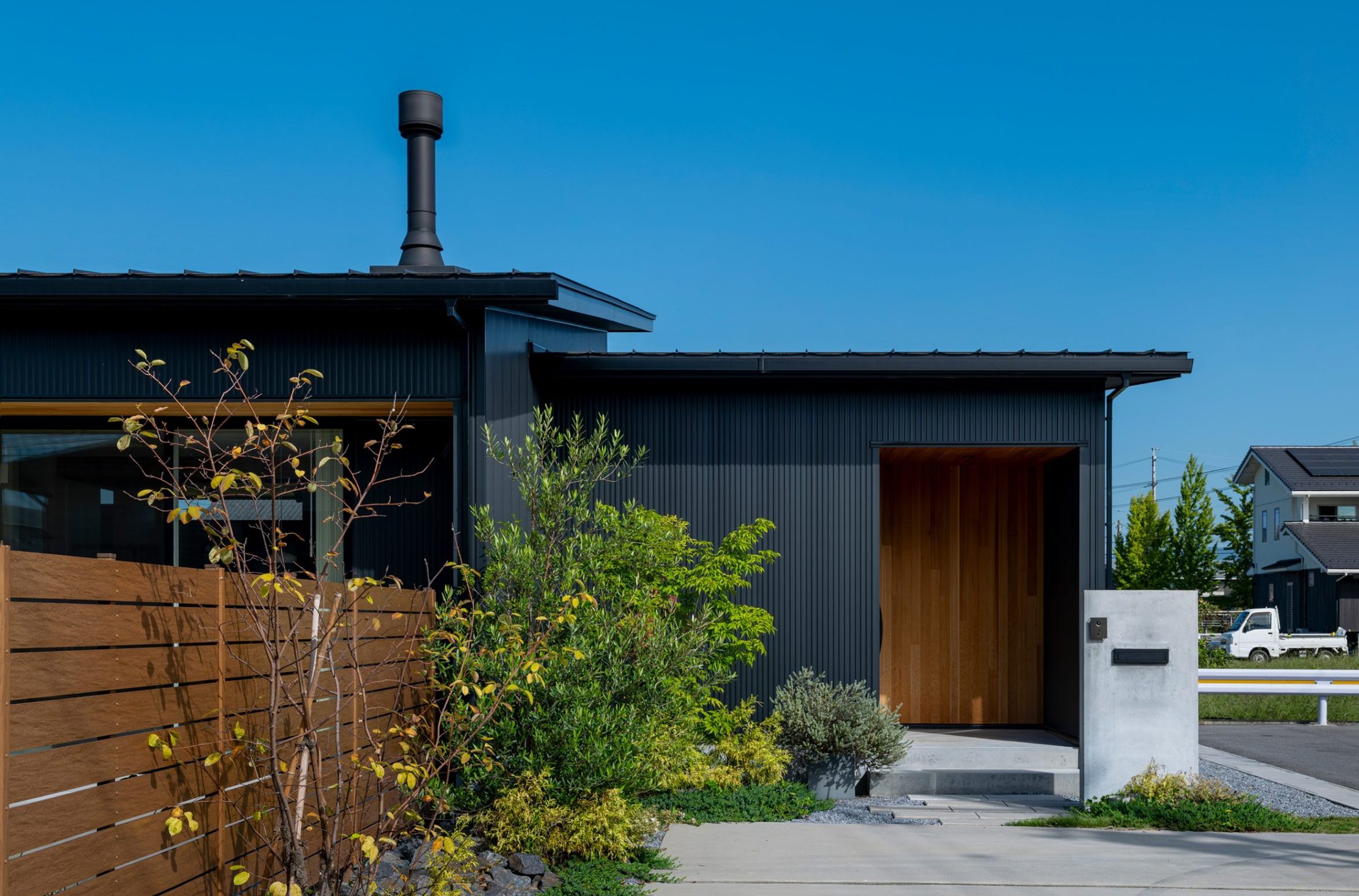 #シンプルモダン #アウトドア #ガルバリウム #白 #黒 #木 #カジュアル #平屋